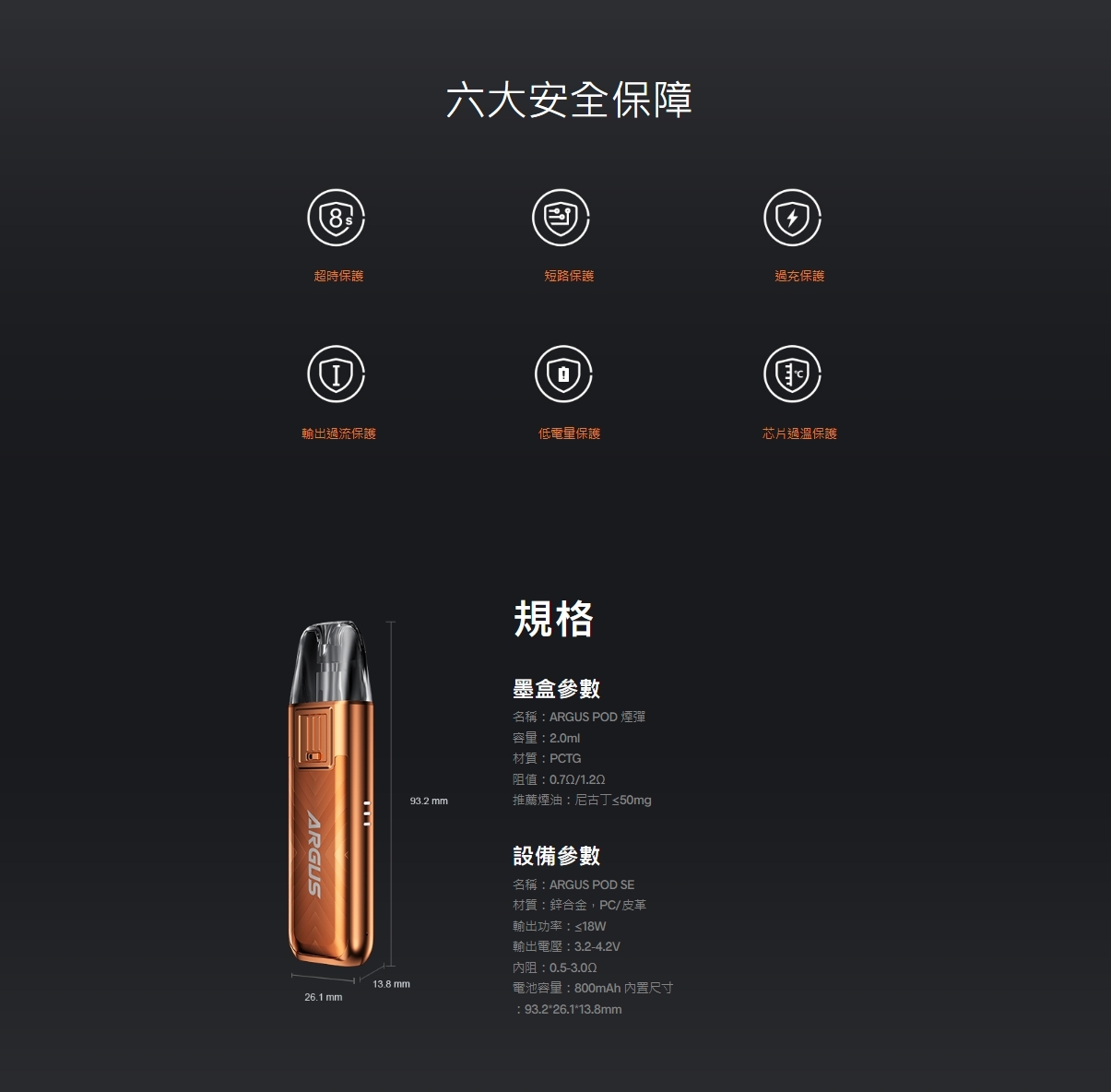 - 多層防漏設計:Argus SE 的 POD 煙彈採用了多層防漏技術,有效防止漏油,保持清爽的使用體驗。