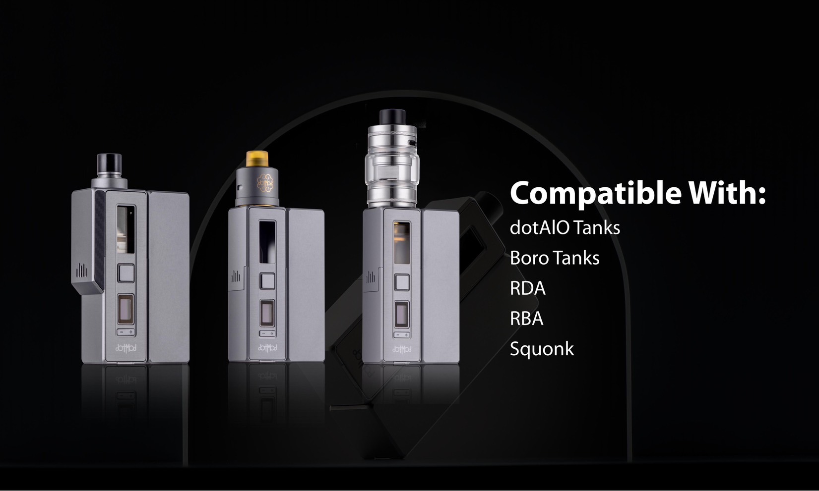 適用霧化器 dotAIO Tank、Boro Tank、RDA