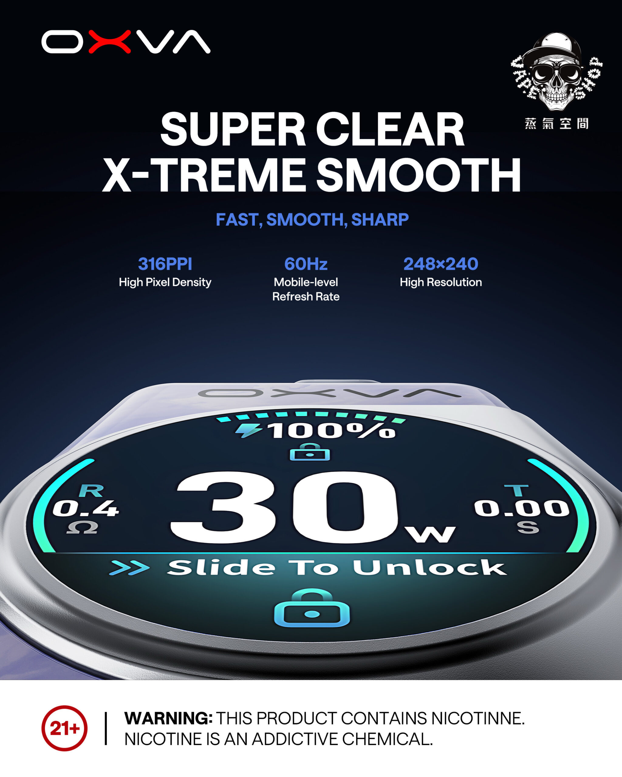XLIM SQ Pro 2 是 OXVA 系列升級旗艦款,首度搭載 1.09 吋觸控螢幕,搭配 1600mAh 大電池、30W 調壓、抽吸紀錄與氣流調節,功能齊全、外型高質,是目前市場上最進階的小煙之一。
